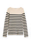 Röndóttur bómullarbolur með síðum ermum "boat neck"