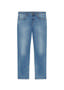 Kemi gallabuxur úr hágæða lífrænni bómullarblöndu með þægilegu cross-hatch gallaefni í fallega bláum lit. Örlítið teygjanlegt efni sem tryggir að buxurnar passi vel. Nútímalegt regular fit í klassísku fimm vasa sniði með beinum skálmum, lágar í mittið og venjuleg sídd. Einkennandi atriði: málmhnappur með lógó, rennilás og ekta leðurmerki á streng. Framleiddar með sjálfbærni að leiðarljósi – allt frá hráefnum til litunar og þvottaleiðbeininga.