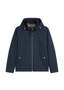 Afslappaður stíll mætir hagnýtri hönnun: blússujakki í regular sniði úr vatnsfráhrindandi tæknilegu poly-cotton efni, þar sem endurunnið pólýester og lífræn bómull fara saman fyrir bæði þægindi og sjálfbærni. Hettan er með teygjustreng til stillingar, innra byrði standkragans er með prjónakanti, og jakkinn er með sportlegum rennilás. Ermarnar eru með smellum og innra byrði í andstæðum lit gefur fallegt heildarútlit. Jakkinn er með hliðarvösum með smellum og stillanlegum faldi með teygju, sem gerir hann fullkominn fyrir breytilegt veður og léttan daglegan klæðnað.
