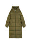 Síð dúnkápa með vatnsfráhrindandi yfirborði. Falleg og hlý: þessi dúnkápa er fremur víð í sniðinu með háum, áberandi standkraga og hettu, sterkum tvíhliða rennilás að framan og stórum vösum með smellum. Það er stroff framan á ermunum og rennilásar í hliðunum sem veita aukin þægindi og hreyfanleika.